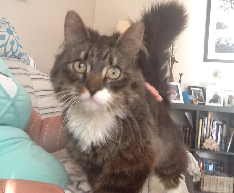 Vi hadde plutselig en katt ekstra... Lå ute hver morgen og holdt seg i nærheten. etter noen dager var han trygg nok til å komme helt bort og hilse, og forsiktig prøvde vi å se om den var merket. Kjente en chip, men klarte ikke få tak i han. Etter noen dager til, og mye om og men, fikk vi jo katten til veterinær og fant ut at han het Sofus og var fra Drammen. Fikk ikke tak i registrert eier eller noen på den registrerte adressen, så vi så for oss at vi hadde fått en skikkelig kosepus i hus.