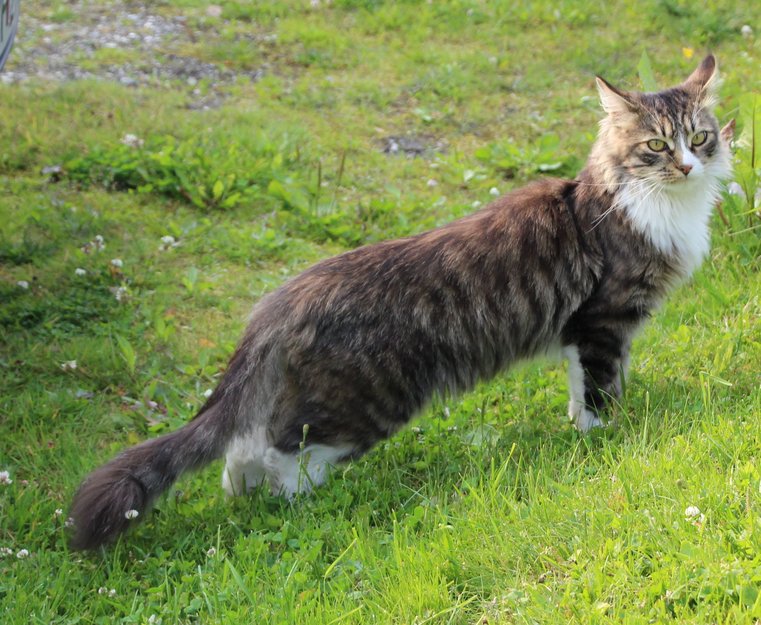 Katten har besøkt mine to frekvent i en periode på ca tre uker. I kveld (13/7) ble den dessverre påkjørt og drept på Marcus Thranes vei.