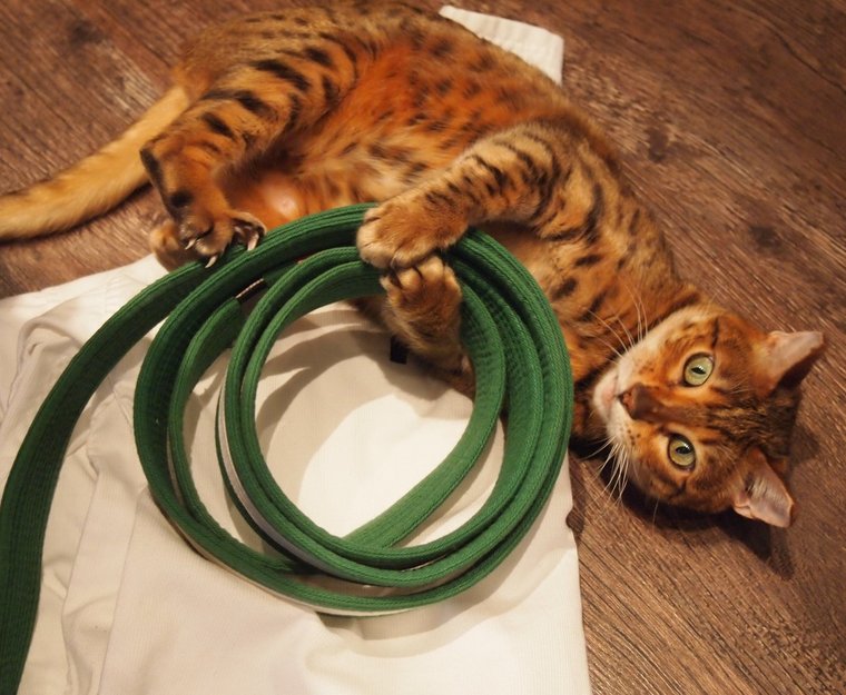 Hun veier ca. 3,5 kg, er gyllenbrun med sorte flekker, og er blitt litt hvit under haken. Hun er veldig leken, men liker ikke å bli løftet.