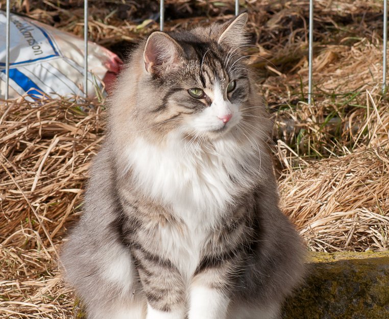 Briza har en spesiell farge, hun er sortsølvspottet med hvitt, men har mye gyldent i pelsen sin også. På bildet er hun i full vinterpels, hun har sommerpels nå og er derfor mye mer korthåret, bl.a. omtrent uten krage.