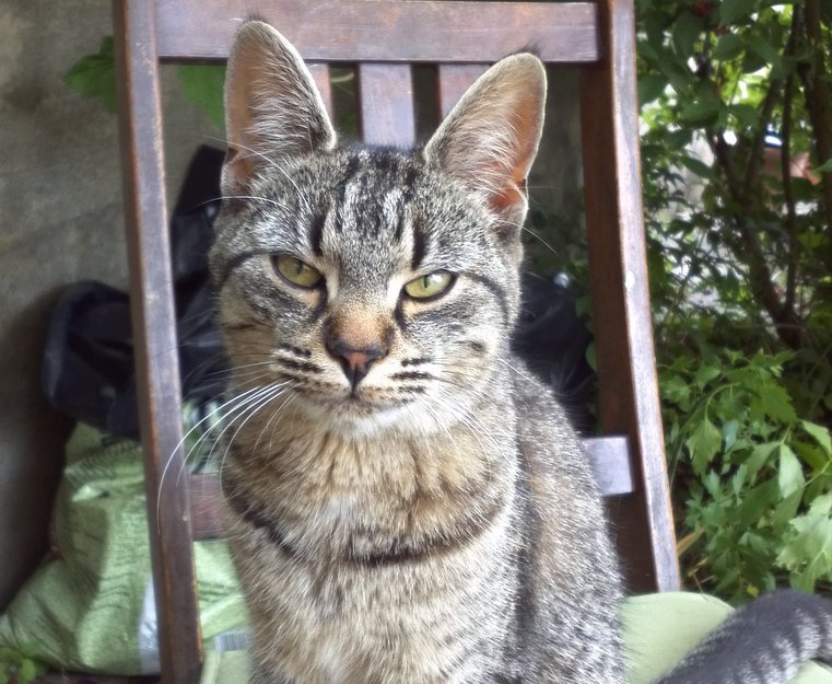 Slank ungkatt som vi tror er en hunnkatt har kommet til oss. Er sulten og kosete og mjauer etter omsorg og mat. Tydelig vant til mennesker og veldig kosete. Er kjelen og maler høyt.