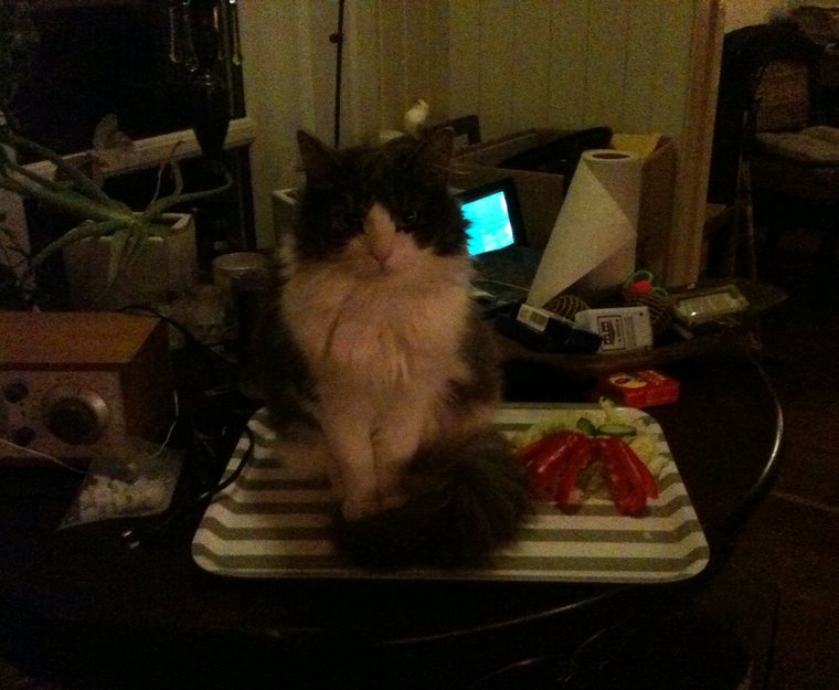 Vi har katteluke, og det var mye mat igjen i skålene...!