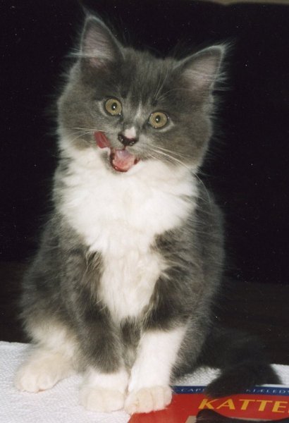 Gråtass har nydelig grå pels (noe perser i seg), hvitt bryst, hvite poter og en hvit flekk på nesen. Buskete grå hale.Hun hadde et blått halsbånd på seg da hun forsvant, med mitt telefonnummer på. Bildet er tatt da katten var helt ung.