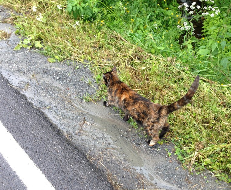 Kalisto er en katt som snakker mye og elsker å gå tur med meg. Hun vil nok ta kontakt med mennesker for å få hjelp. Alle må se i garasjer og lignende. Hun er kjapp til å gå inn på sånne steder.