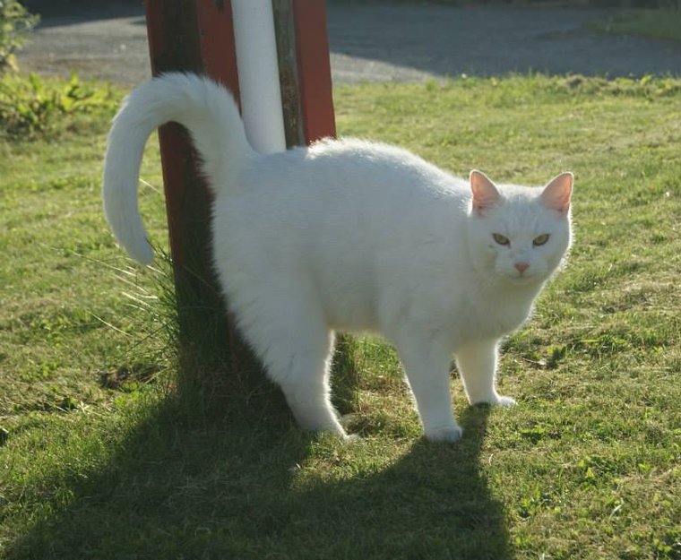 hel hvit, kastrert, chipe og øremerket