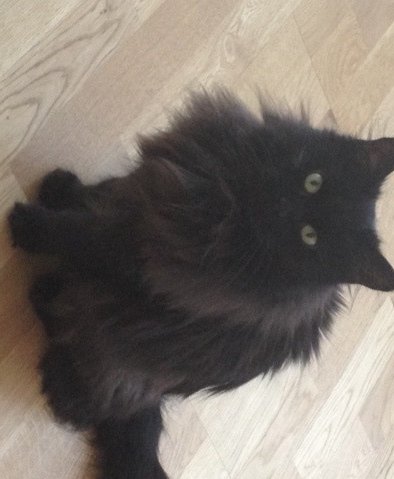 Hun er en liten jentepus med langhårer sort pels, som er veldig forsiktig og sky.