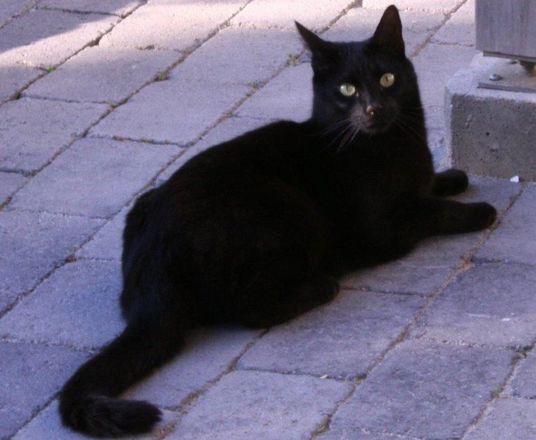 Helt sort hannkatt. Veldig tillitsfull.