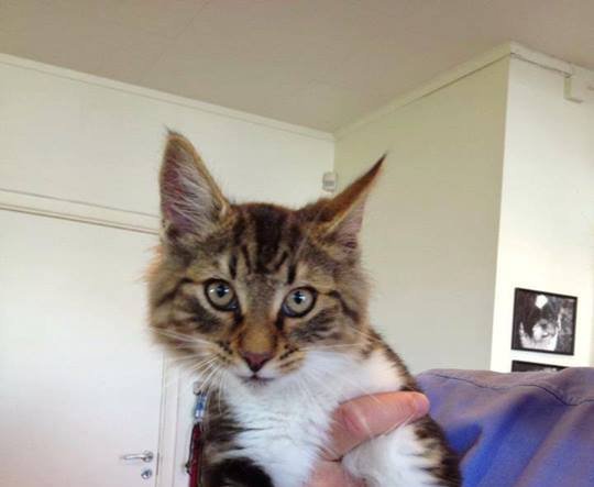 Fant en liten kattunge, ca 12-16 uker gammel. Gått og skrapet på dørene i nabolaget og vil inn. Virker tam, men mjauer en del. Tok katten med til Vestby Dyreklinikk for å se om den var chippet, noe den ikke var.