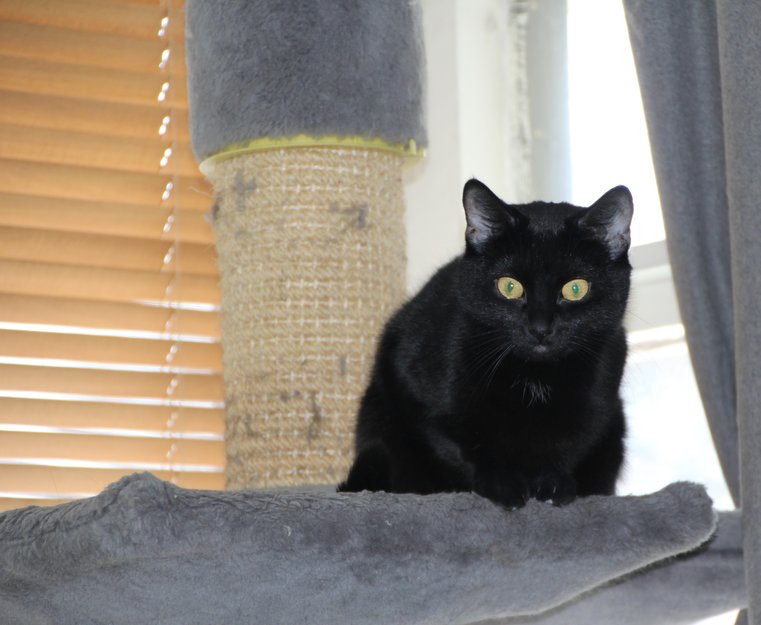 Liten tynn redd jentepus. Sort pels og veldig redd.