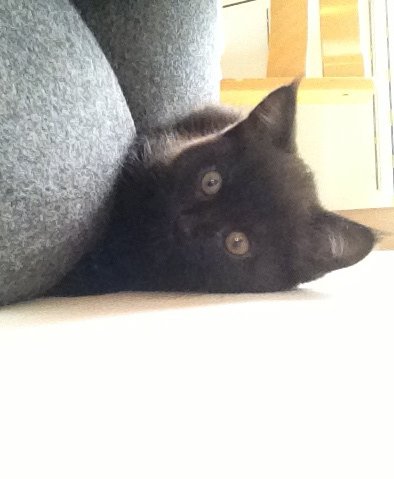 Hun er sort og har noen hvite hår på halsen (man må se etter for å se det). Hun er ganske liten og nett, er kjælen og tillitsfull.