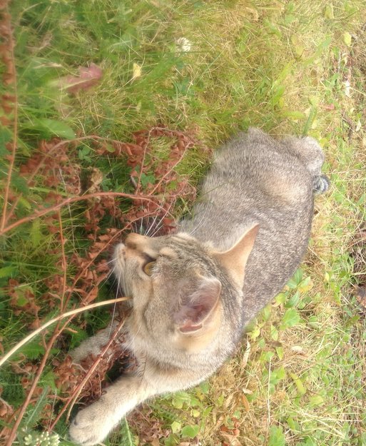 Vi har en liten ukjent pus som står og mjauer utenfor huset vårt. Den virker tillitsfull og kosete, og vil gjerne inn. Den ser ut til å ha et hjem, da den er pen i pelsen og har halsbånd. Klarer ikke å se noe merking av pusen.