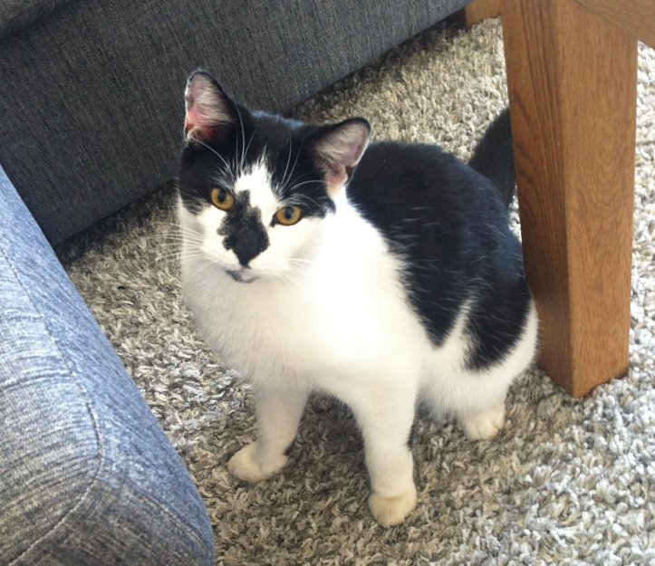 Vickers er en ett år gammel, hjemmekjær katt. Han er vanligvis ute på dagtid når vi er på jobb, men er aldri lengre unna enn at han hører når vi roper på han. Han er inne hver natt.