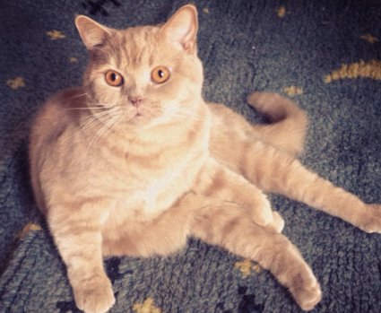 Han er en innekatt, men har nok blitt skremt av tordenværet og kommet seg ut. Goni er beige/gul, har rosa nese med brune flekker og oransje øyne. Han ser litt lubben ut.