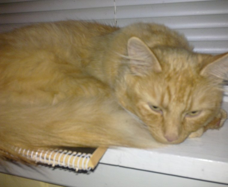 En dame ringte i dag og sa hun hadde sett en gul katt ved Vienkrysset. Var og fant han igjen midt mellom 2 rundkjøringer med riksvei på begge sider i god behold og noen tugger i pelsen. Mandag blir det helsesjekk og mark kur på gutten .