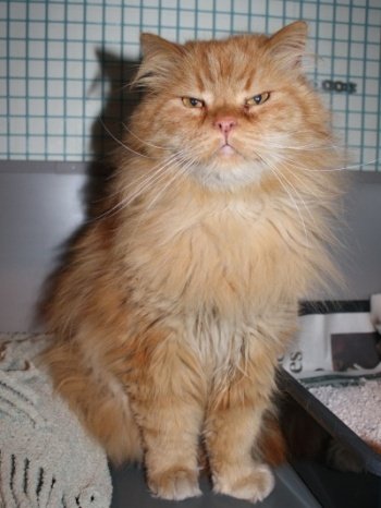 Snill og tillitsfull voksen kastrert hankatt. Skitten i pelsen og litt flokete.