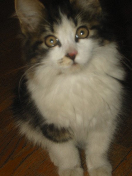 Liten kjelen hunnkattonge med liten sort flekk på venstre side av snuten(Se bilde)