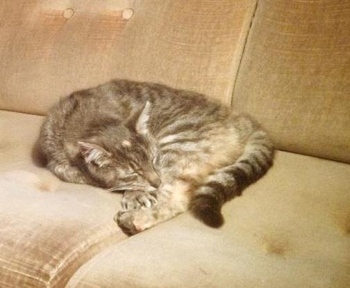 Lo har grå striper, hvit mave og en liten gul flekk i pannen samt en større gul flekk på bakbeinet. Hun er litt redd av seg men veldig sosial etterhvert.