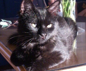 Kattunge på 4,5 måned. Lodden, svart med bustete hale. Veldig kosete hjemme, men kan være forsiktig. "Snakker" med familien sin.