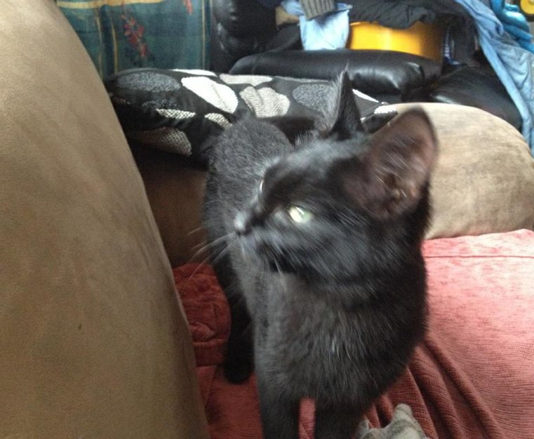 sort, nydelige gule øyne, tynn og slank. litt hvitt hår på brystet.noen hvite hår som stikker ut her og der. har ikke bilde enda, hun kan ikke ha vært savnet lenge, var ikke sulten. Muligens løpetid??