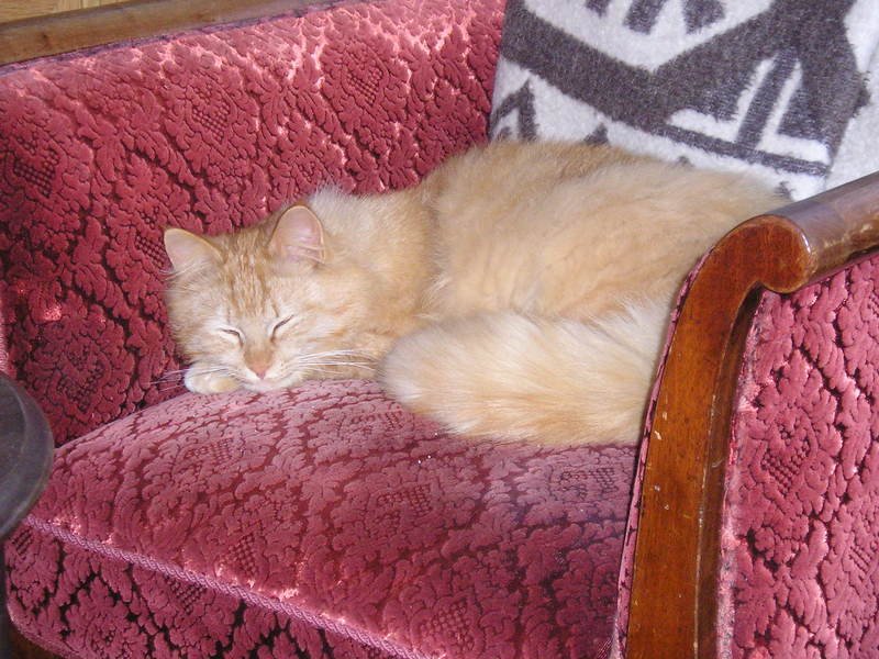 Veldig kosete og sosial pus som går inn hos hvem som helst. Han er nesten ensfarget lys rød og langhåret. Han er ganske stor og veldig vakker, samtidig som han også kan være litt barnslig søt.