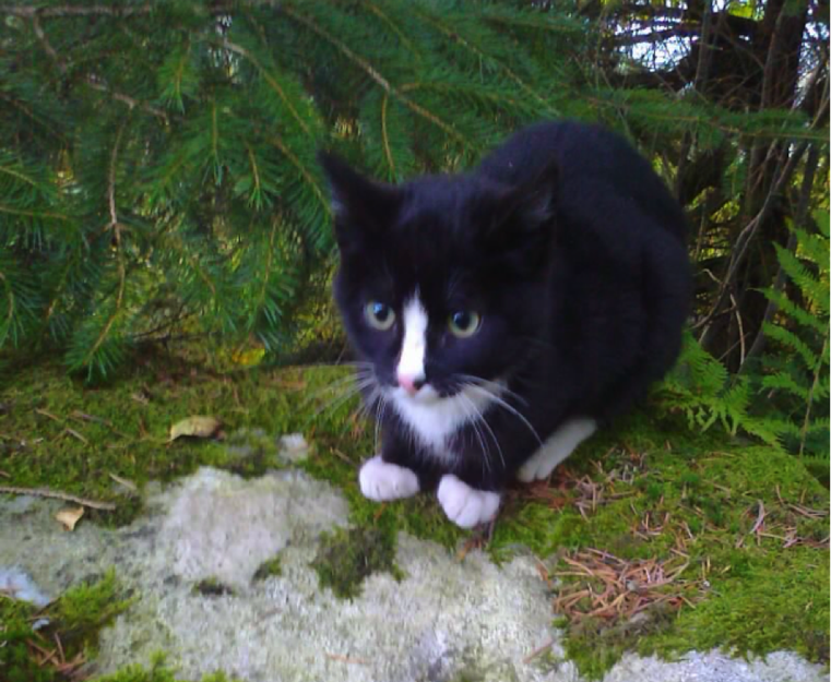 Svart og hvit hannkatt. Ca. 3-4 mnd. Lukter "hus" og var ikke mager og den er veldig kosen og selskapssyk. Håper noen savner denne vakre pusen.