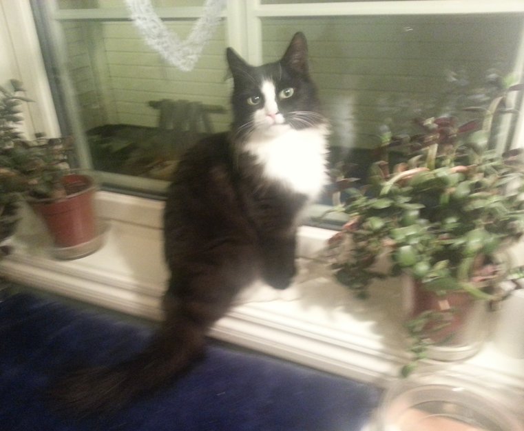 Pusen har vært i området ihvertfall ei ukes tid og kanskje lengre. Pusen kommer seint om kvelden og er veldig sulten. Det er sannsynligvis ei lita hukatte, ikke fullvoksen, semilanghåret, kjempesøt, silkepels, kontaktsøkende og veldig sulten. Den er desverre ikke chippet. Jeg tror ikke den har vært hjemmefra så veldig lenge da den ser frisk og fin ut også i pelsen.