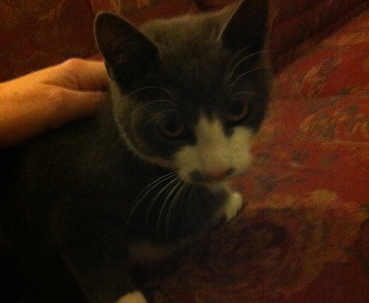 Grå og hvit hannkatt med grå markeringer i ved munn funnet i Blakkensvei, Mortensrud
