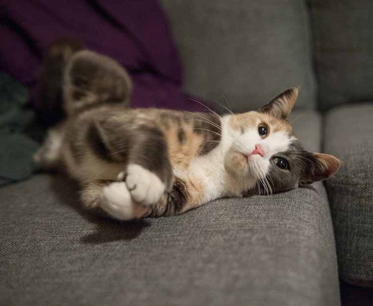 Katten er liten, kanskje ung voksen? Har ekstra tær og tomler, så mistenker den er skipskatt og kanskje av en krysning av Manx?