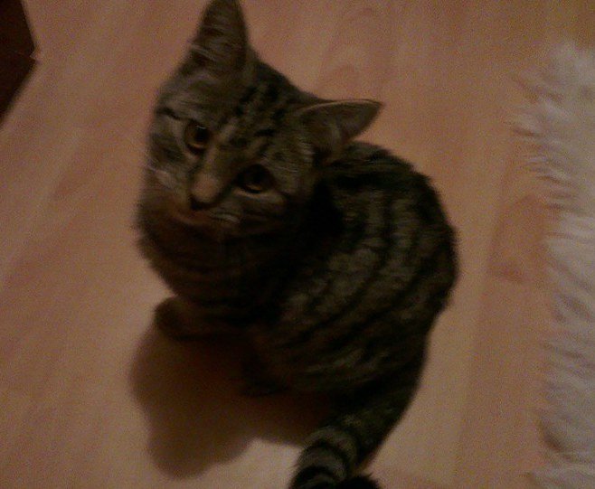 Kattungen smatt inn når vi åpnet ytterdøren der vi bor, Hun vil ikke ut igjen og følger oss over alt inne i huset og vil ikke være alene.