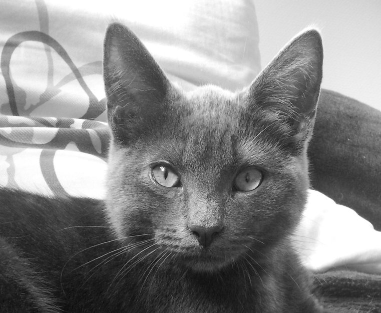 Han er helt grå i pelsen og med tiger striper på halen om en ser godt etter.