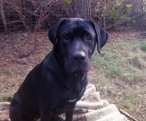 Hellas har en hvit flekk på brystet. Hun er 3 år. Snill og tillitsfull. Er en veldig glad hund. Sosial, glad i barn.