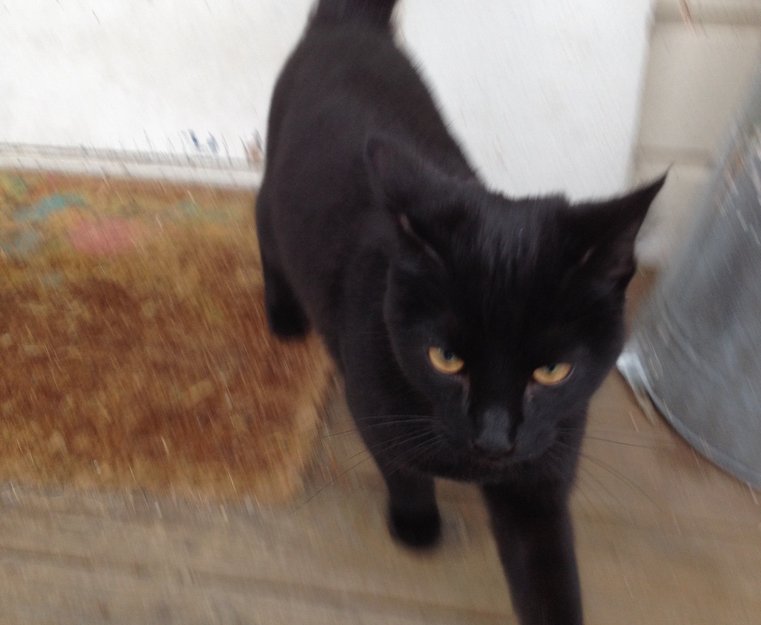 Meget ung katt "flyttet inn" på plattingen vår fredag 29.11 og vil inn til oss hver gang vi åpner døren. Den er meget kjælen og følger etter oss ute, selv om vi har hund. Helsvart farge. Veldig tillitsfull. Har laget et midlertidig papphus med avispapir og håndklær i for å gi den litt ly, vi kan dessverre ikke ta den inn. Vil sjekke evt chip hos veterinær til uken.