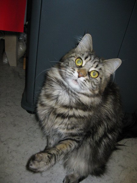 Innekatt som trolig har hoppet ut av et vindu i andre etg. Overhode ikke vant med å være ute og er generelt meget skeptisk til det meste. Kan kanskje lokkes med silketråder og skolisser. Er veldig glad i tunfisk, sei og frysetørket sei fra Provit og hun reagerer vanligvis på rasling med provitposen.