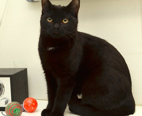 Ca 6 mnd gammel hunnkatt. Sort pels med hvit flekk på brystet. Tillitsfull, trygg og leken.