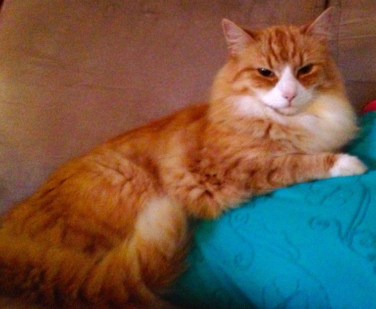 Han er sist sett natt til fredag den 6.des. Han er en smidig gul-oransj skipskatt med hvit snute, bryst og mage.