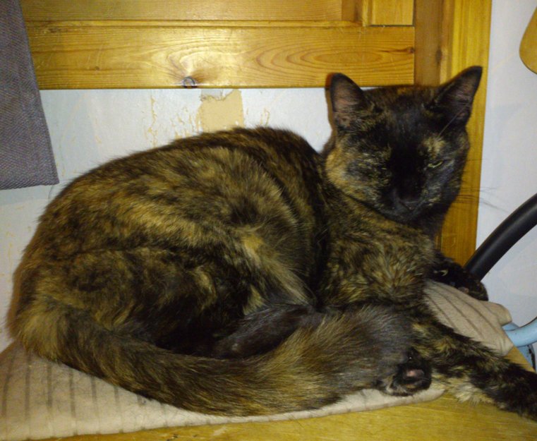 Katten er mørk, brunspraglete, heter Iselin, og er født i 2006. Hun er veldig hengiven og kosete.