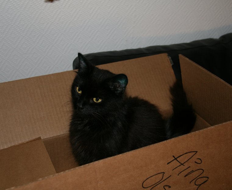 Hørte plutselig mjauing utenfor døra, og der sto hun! Våt og kald og flokete i pelsen, men ellers i god form. <3