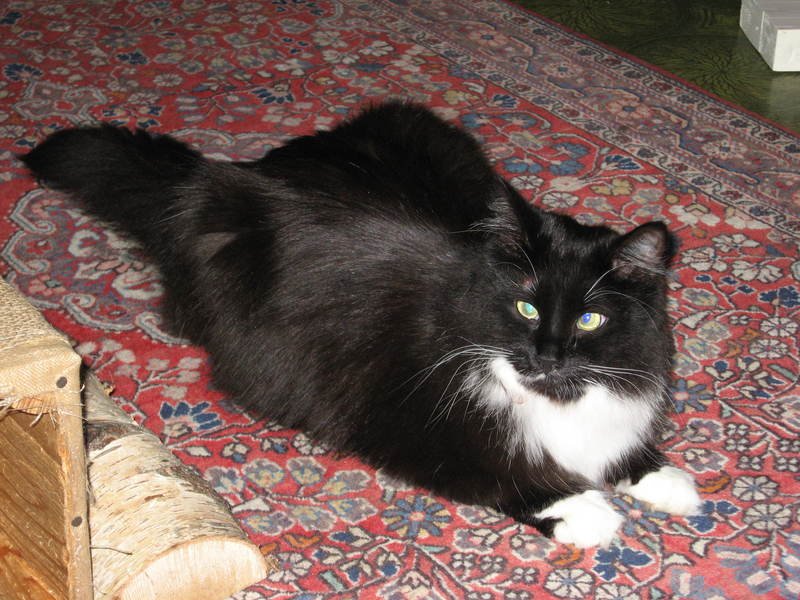 Snuppa er svart, storvokst med tykk hale, hvit i brystet og hvite poter.