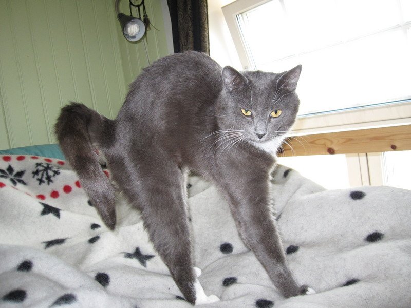 Han kan være litt sky, men er veldig snill og kosete.