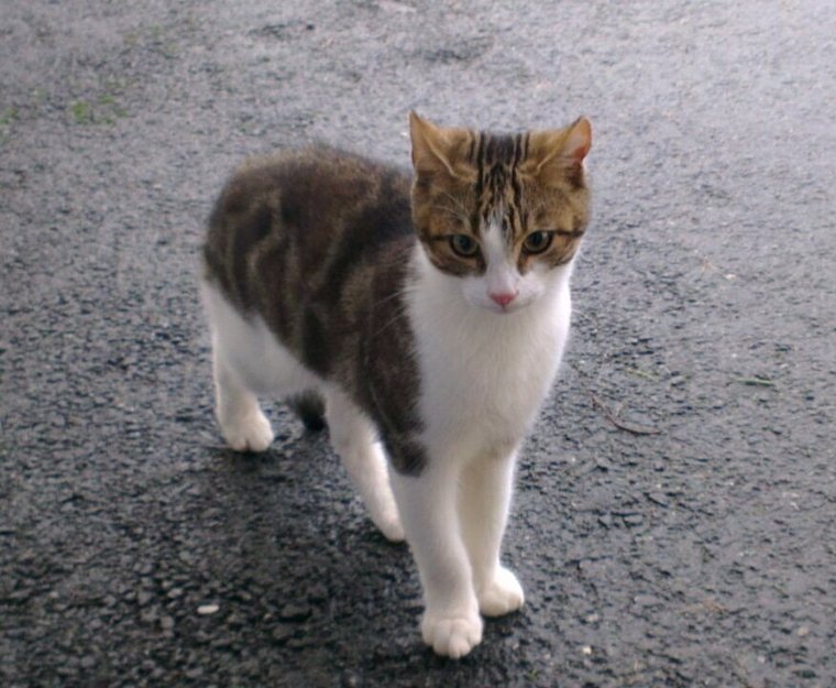 Hvit, brunspraglet hannkatt ble funnet i Sandnes
