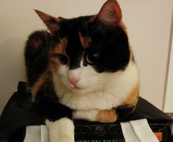 Pen tricolor hunkatt, sterilisert og kosete. Har et lite "heng" da hun har vært litt overvektig tidligere. Spraglete fargepels med sort, gul/oransje og hvit.