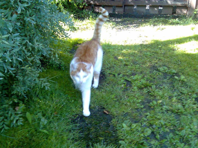 Kom til oss plutselig en dag og har blitt her siden. Vi prøvde å ikke mate den, men etter noen dager ble det så sårt at vi måtte.