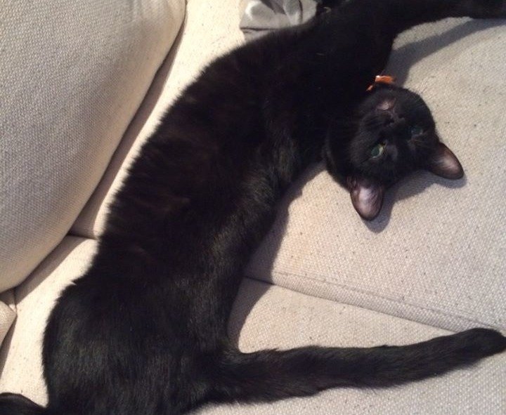 Simen er helt svart og hadde på seg oransje halsbånd med refleks da han forsvant. Dette kan ha falt av. Han er litt over ett år gammel, kastrert og chipet
