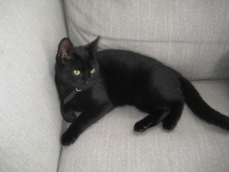 Helsvart liten kattunge. Veldig sulten og kjælen.