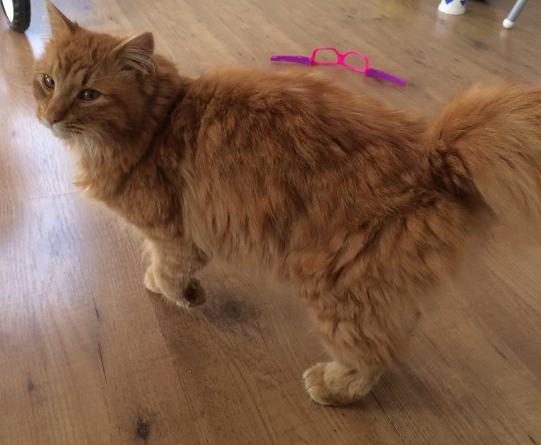 Denne pusen sto og mjauet på trappa vår i dag tidlig. Den fikk komme inn og fikk litt mat - den var veldig sulten.