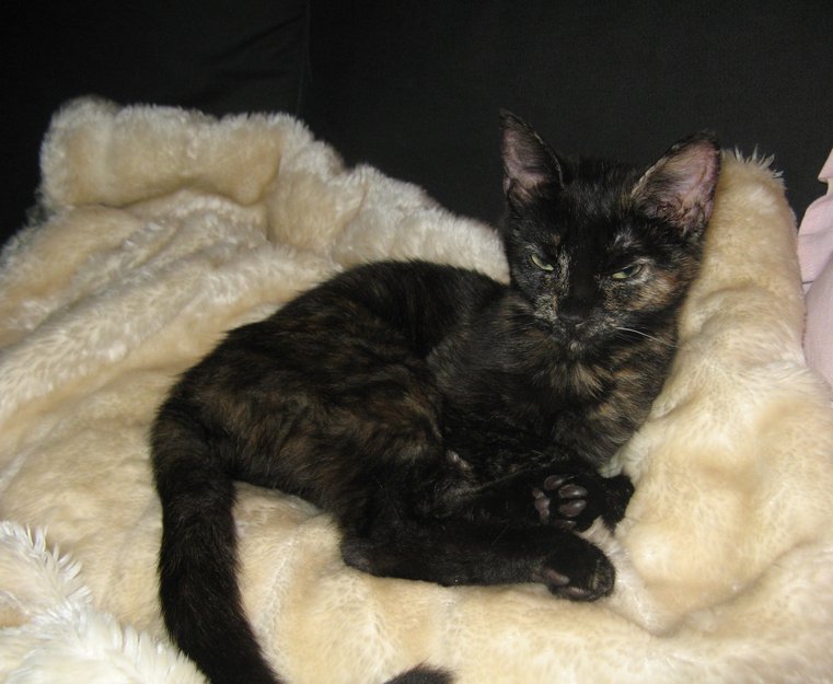 Liten brunspraglet jentepus funnet utenfor huset mitt i Granvegen 20 på Råholt. Jeg har tatt henne inn, gitt henne mat og nå sover hun.