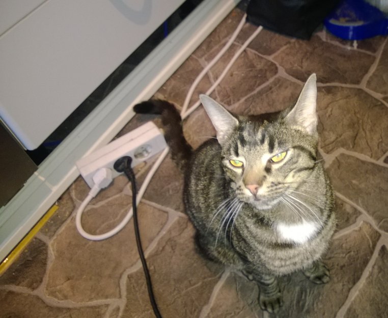Storm har blitt borte, han er tigret huskatt med et hvitt merke på brystet.