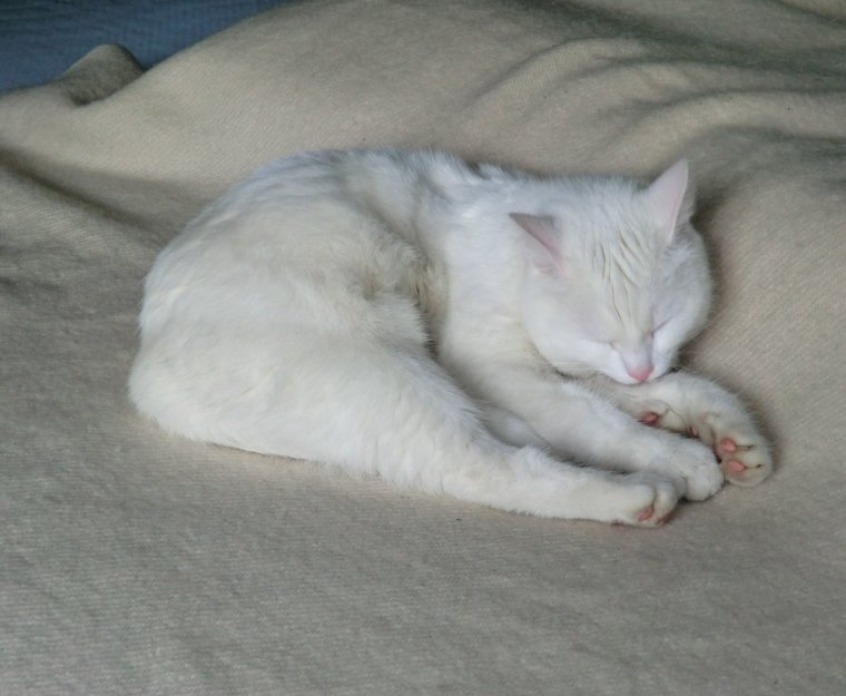 Sushi er en 3 år gammel ensfarget hvit mellomstor huskatt. Kan være litt sky og redd for mennesker og hunder. Hun er sterilisert og chippet.