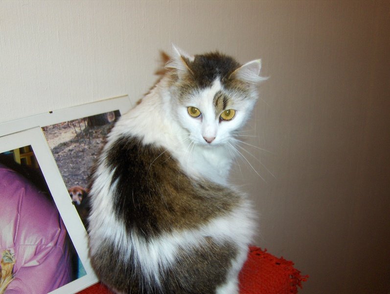 De siste 1 1/2 år vært inne- katt hos meg.Elskelig og pratsom pus,som tydelig ønsket å forbli innekatt - med egen adresse og matskål, helt til......(mor ikke lukket hagedøren godt nok!!!)