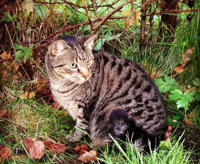 Rasmus ble sluppet ut om ettermiddagen langfredag, har ikke sett ham siden. Han pleier å komme hjem hver kveld og er aldri lenge ute om gangen. Vi har vært hjemme hele tiden og har lagt ut mat om natten, men ikke sett spor etter at han har vært og spist heller.